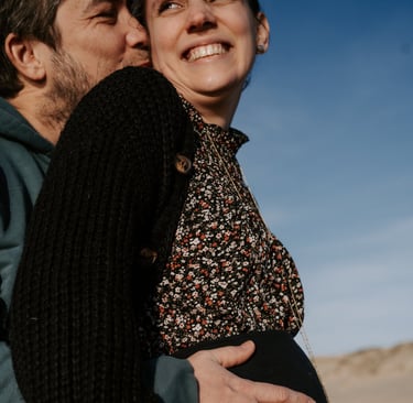Vous n'avez rien à prouver. Je vous guiderai doucement pour que vous vous sentiez belle, à l’aise, pleinement vous-même. J’aime capturer les gestes spontanés : une main sur le ventre, un regard tendre, un souffle, un rire. Si un partenaire ou un enfant vous accompagne, c’est encore plus de connexions à capter.
